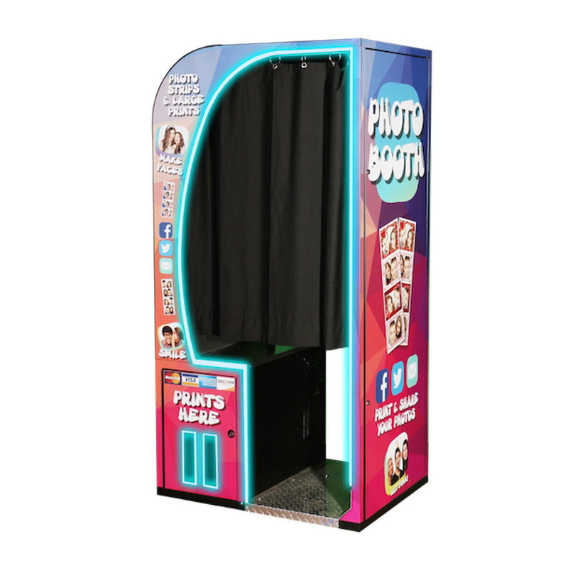 The Face Place Ruby features a solid steel cabinet engineered to withstand heavy use while maintaining a sleek, professional appearance. The booth includes a LED top monitor for visual appeal, a Mitsubishi dye-sublimation printing system for sharp, long-lasting prints, and touchscreen navigation for intuitive operation. The audio and video recording capabilities let customers personalize their experience, while customizable borders, logos, and backgrounds provide countless creative possibilities. Operators benefit from remote auditing and monitoring, while guests enjoy instant social media connectivity via email, Facebook, Twitter, or Instagram. Compact, durable, and interactive—the Ruby Photo Booth brings professional-grade fun to any venue.