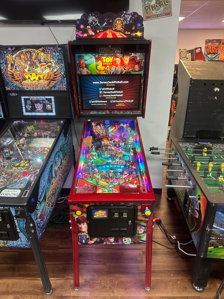Pinball Arcade Salvation is honored to present you the JJP Toy Story 4 Collectors Edition Pinball Machine, a premium, limited run of just 1,000 individually numbered CE units that turns your game room into a carnival of Pixar magic. Designed by Pat Lawlor with lavish Carnival Red powder chrome armor, exclusive sparkle-accent playfield art, and a dazzling Fiber Optic Fireworks topper with flying Duke Caboom mech, this Collectors Edition is the definitive Toy Story experience—bursting with interactive toys, cinematic displays, and JJP’s signature light-and-sound spectacle.