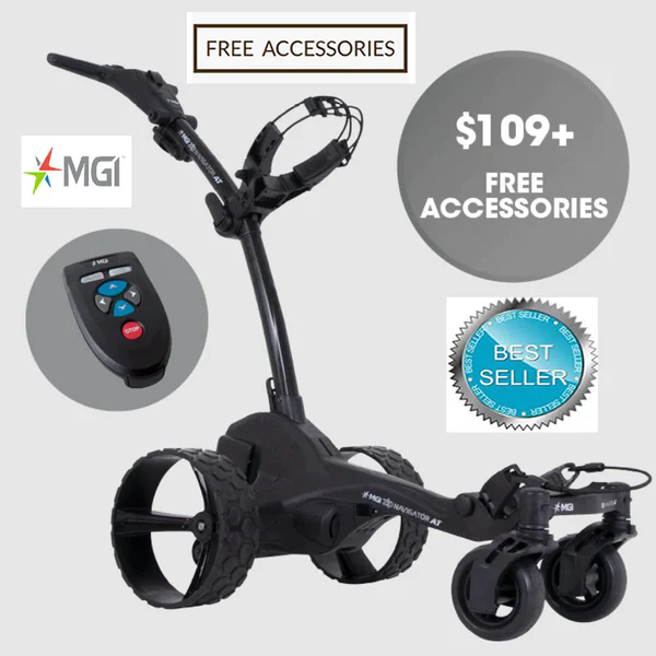 Picture yourself strolling leisurely along the fairway, your golf clubs gliding effortlessly by your side. No more lugging around a heavy golf bag or struggling to navigate challenging terrain. With the MGI Zip Navigator AT Lithium Remote Control Golf Caddy, you’ll be free to focus on your game while your clubs are guided with unmatched precision and ease.